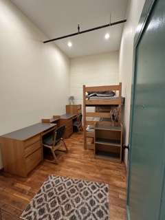 Monthly fees are $450. Fees include heat, utilities, internet, and a partial meal plan.